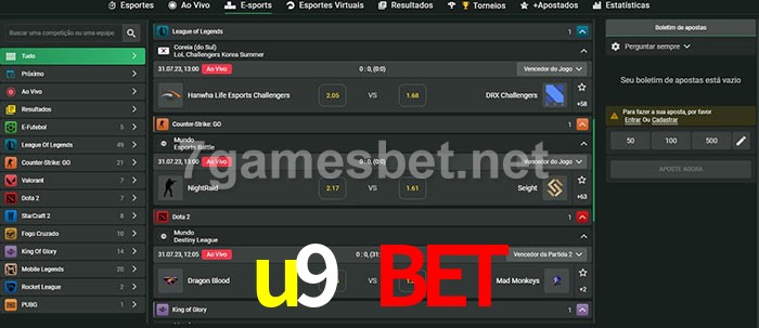 O u9 bet oferece uma grande seleção de opções de apostas em e-sports com probabilidades competitivas